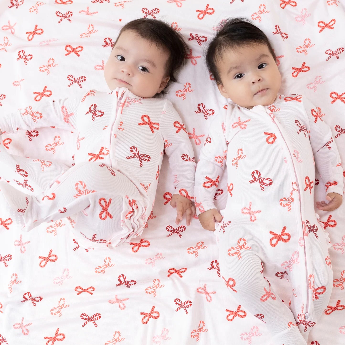 Candy Cane Bows - 2 Way Zipper Ruffle Back Footie
