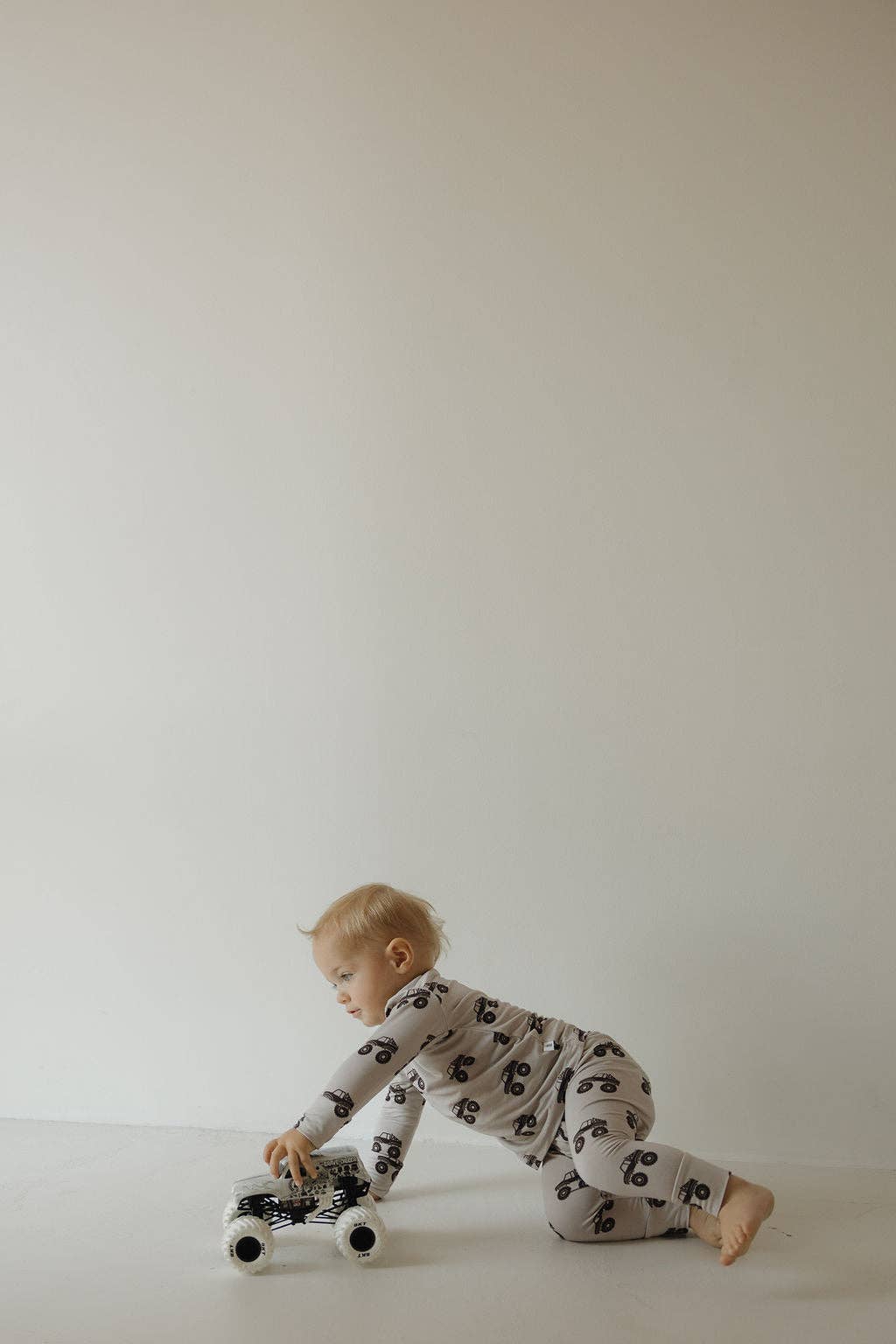 Sleep easy with our monster truck sleepy-time set! Crafted with bamboo and featuring a cozy two-piece design, this adorable lounge set will keep your little one comfy and secure. it's the perfect choice for a night full of sweet dreams or a day of adventure! Material : 95% bamboo viscose / 5% spandex A key benefit of bamboo clothing is that it is naturally hypo-allergenic, gentle on the skin, and highly breathable. It keeps skin cool in summer and warm in winter by wicking away any excess moisture. No need for both summer and a winter wardrobe – with bamboo clothing your babe will be comfortable year round. Care Instructions : Wash with like colors Tumble dry on low or hang dry Exclusively by Forever French Baby