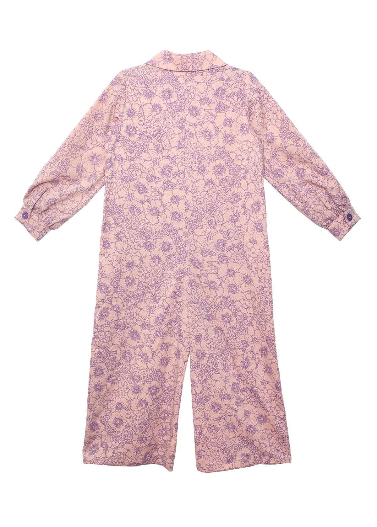 The Flower Power Romper adds a touch of playful elegance to your little ones wardrobe. Crafted from soft, lightweight fabric, it features an intricate pattern of purple blooms on a blush backdrop. Details like the button-front design, subtly puffed sleeves, and a rounded collar create a classic yet modern look. Perfect for everyday wear or making memories in comfort and style.