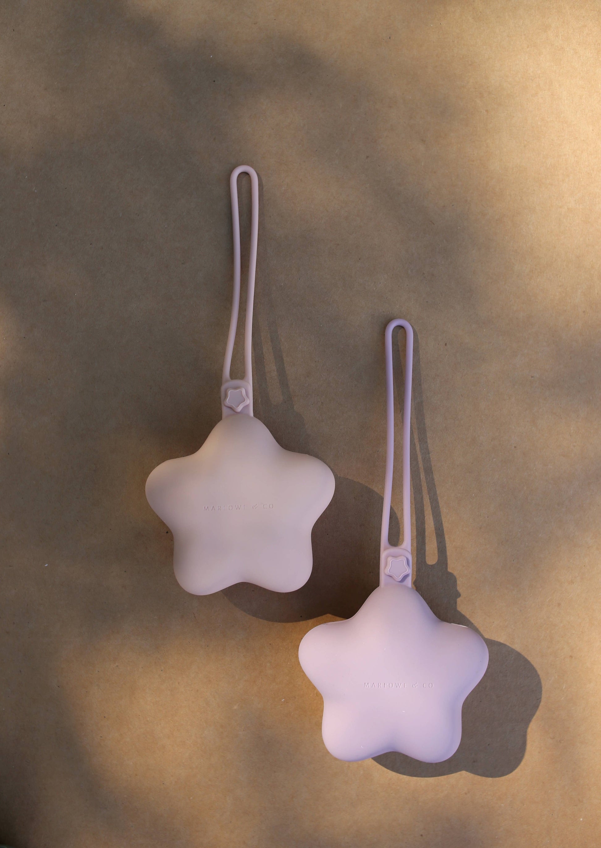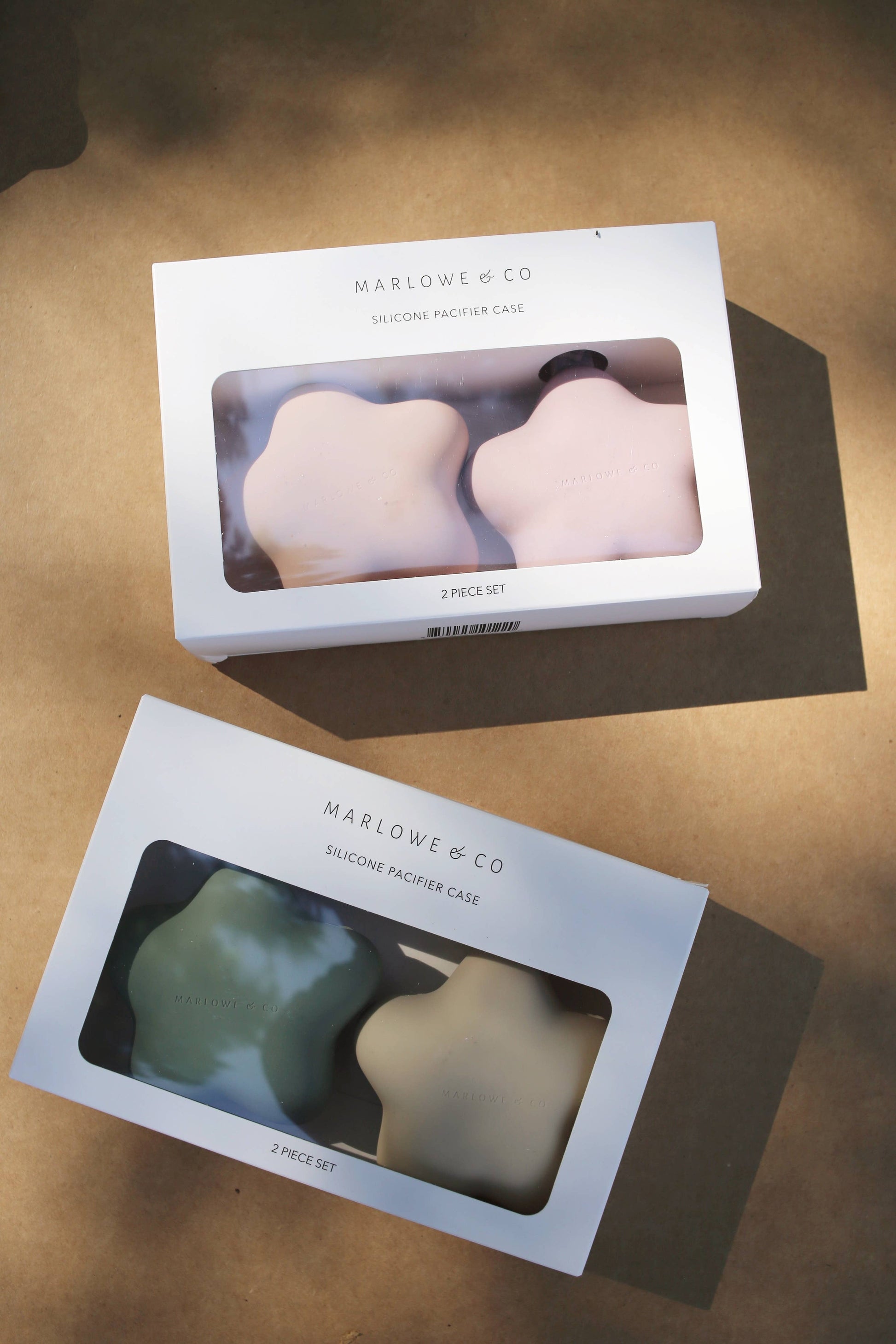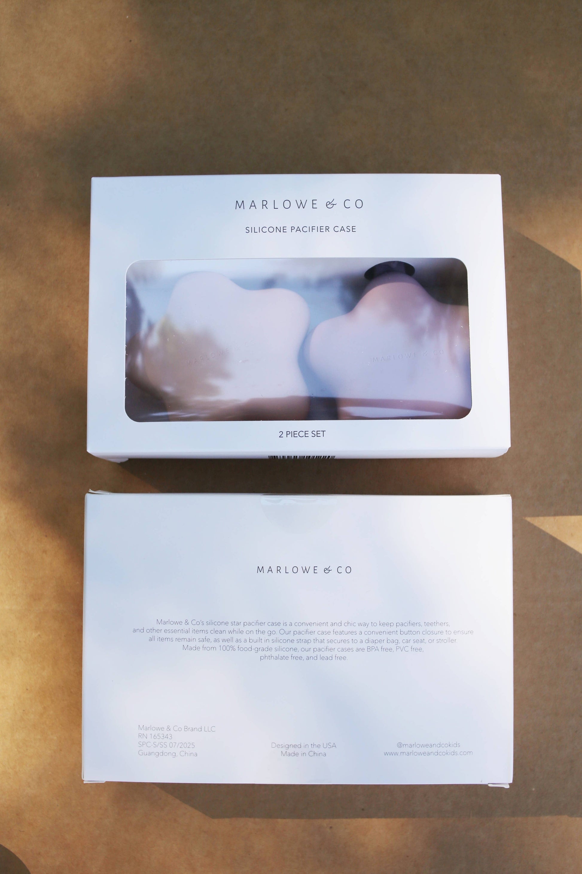 Marlowe & Co’s silicone star pacifier case is a convenient and chic way to keep pacifiers, teethers, and other essential items clean while on the go. As your child grows you can use it for small essentials like lip balm, hair ties, or other small items. Our star pacifier holder features a convenient button closure to ensure all items remain safe, as well as a built-in silicone strap that secures to a diaper bag, car seat, or stroller. Made from 100% food-grade silicone, our pacifier cases are BPA free, PVC free, phthalate free, and lead free. This set is a darling gift for a baby boy or girl and is packaged in a giftable box. Features: ~ 2 piece set ~ 100% food grade silicone ~ BPA Free, PVC free, Phthalate free, Lead free ~ CPSC tested to ensure compliance and safety ~ Star Dimensions: 4.75 in x 4.25 in ~ Dishwasher Safe ~ Ages 0 months + Care Instructions: Hand wash or place in the top rack of the dishwasher. Air dry or wipe with a clean cloth to remove any water drops.