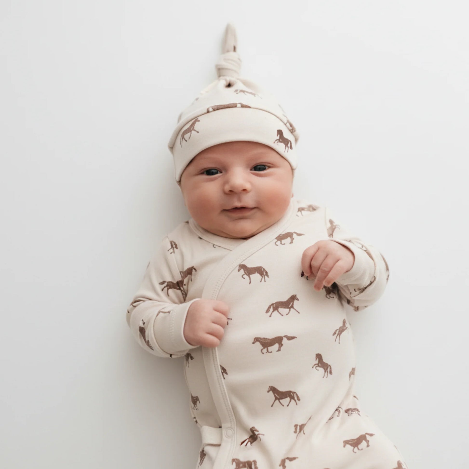 Organic Kimono Knotted Sleep Gown & Hat Set - Horses