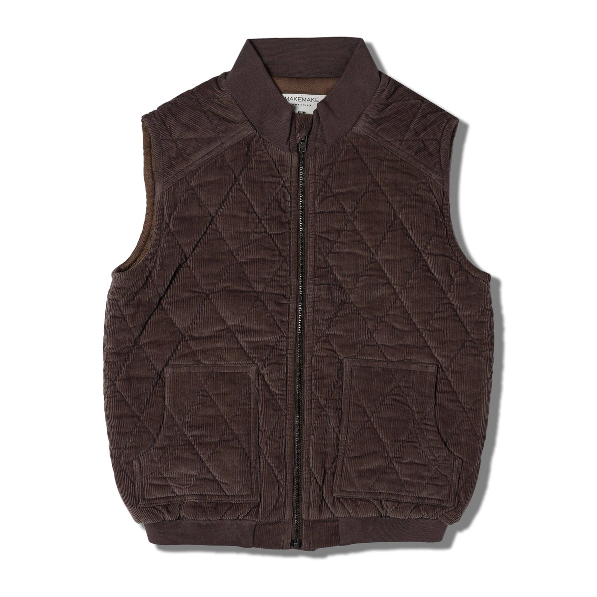 Organic Sleeveless Quilted Corduroy Jacket - Dark Brown