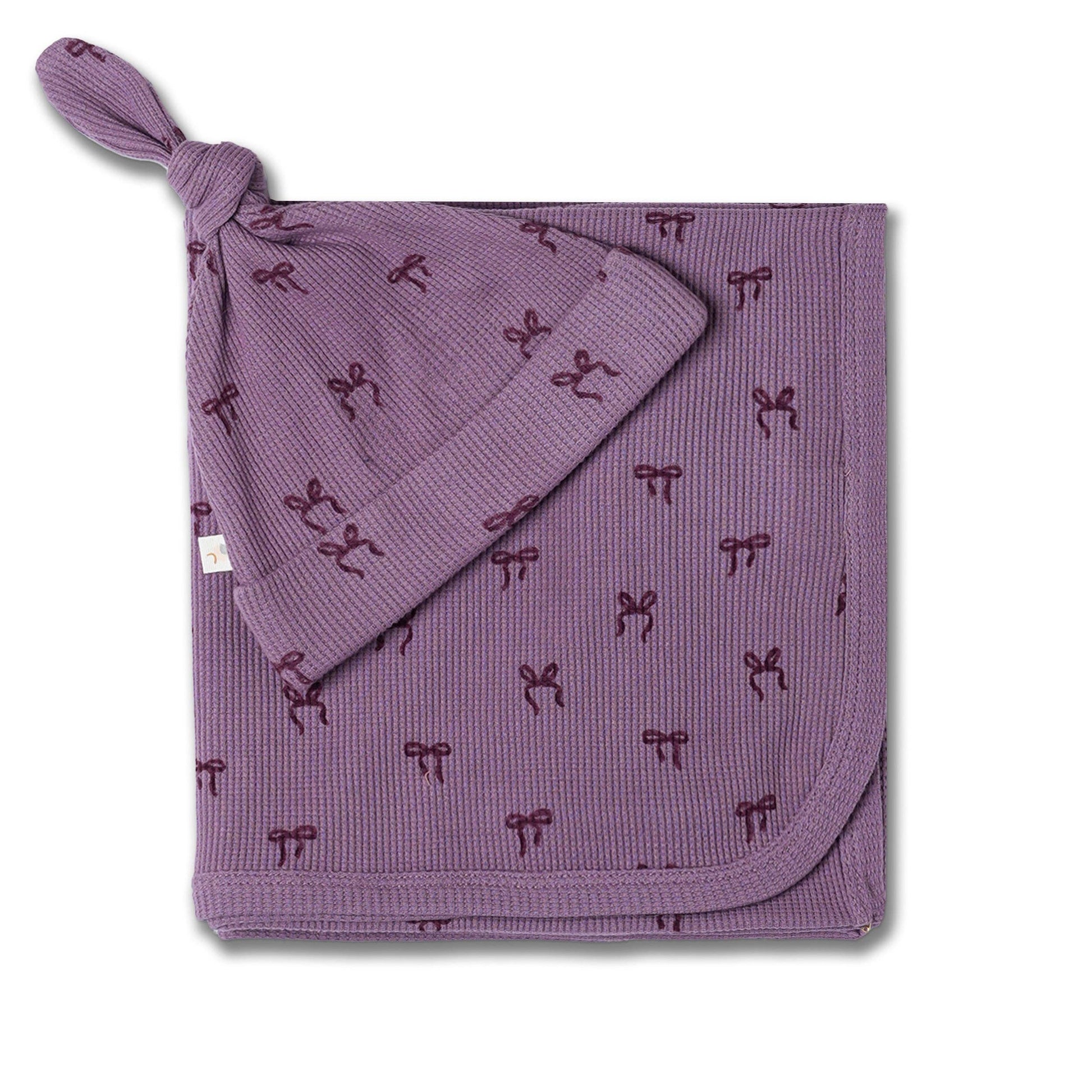 Welcome home! Enjoy your little one's home coming with this 2 piece set, complete with stretchy swaddling blanket and matching knotted hat. Experience the ultimate comfort of our butter soft organic cotton. Lightweight cotton knit is incredibly luxurious, breathable and has a wonderful drape to it. Take everywhere you go and use as a playtime blanket, stroller cover and more. These baby swaddle blankets with their gender neutral prints are perfect baby shower gifts. New parents say these soft blankets are top items on their baby registry. This Baby Blanket Set is CPSIA Compliant and GOTS certified - your guarantee of a high quality organic product.