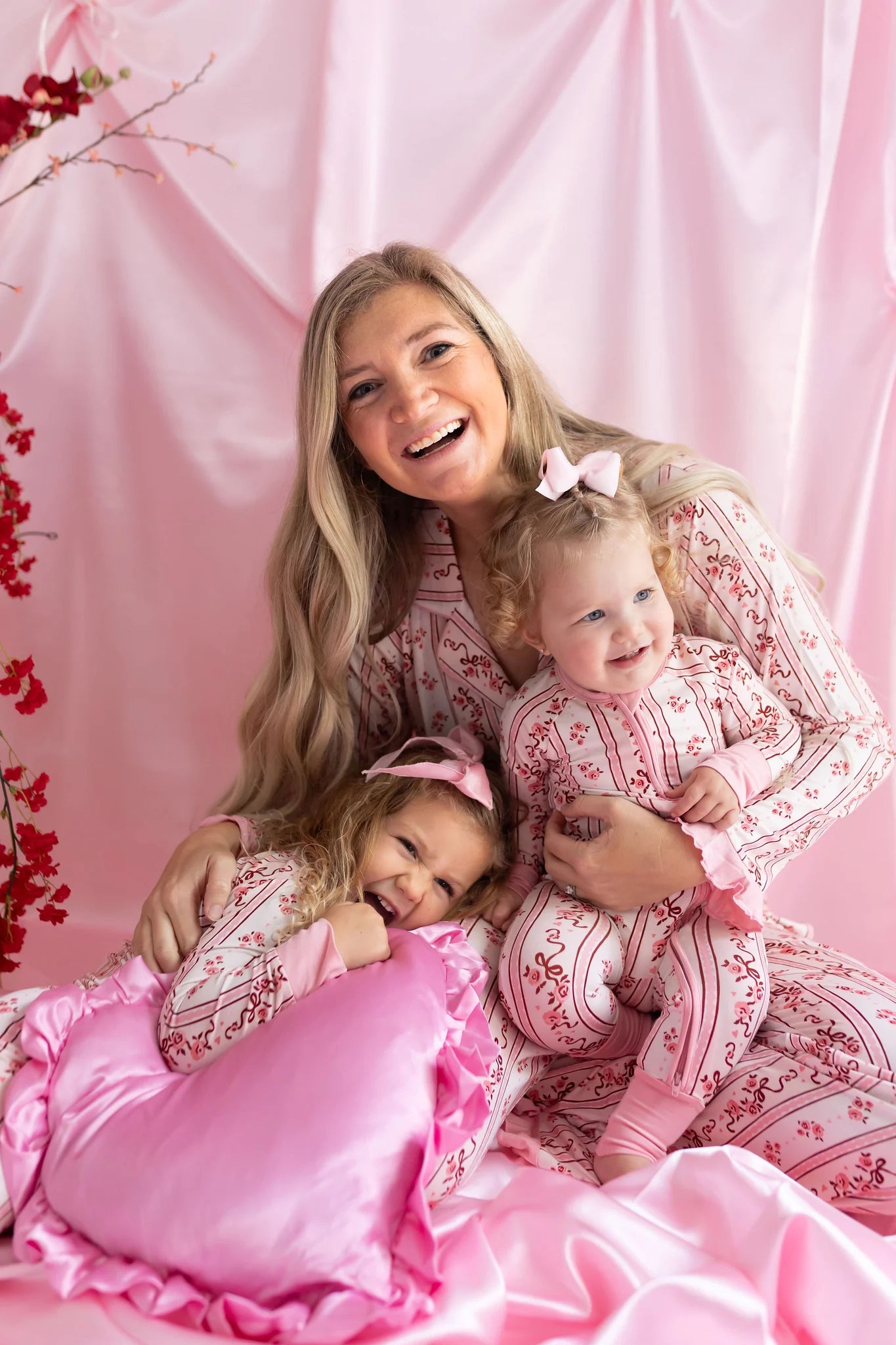Meet Vintage Love, a timeless Valentine’s Day favorite designed to be worn long after the candy hearts are gone. This sweet pink and red print blends delicate florals with vintage inspired stripes for a look that feels nostalgic, cozy, and perfectly playful.